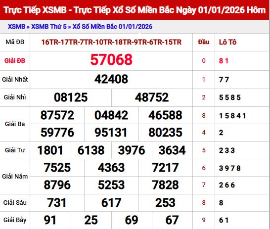 Mời các bạn đọc tham khảo dữ liệu quay thử XSMB ngày 2/1/2026 để nhận diện những con số đang có tín hiệu tốt, từ đó chọn lọc ra các phương án dự đoán xổ số miền bắc ngày mùng 1 tháng 1 phù hợp cho kỳ mở thưởng sắp tới.