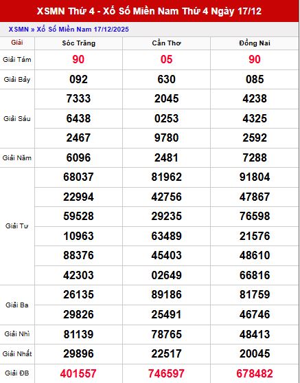 Phân tích kết quả XSMN ngày 17/12/2025