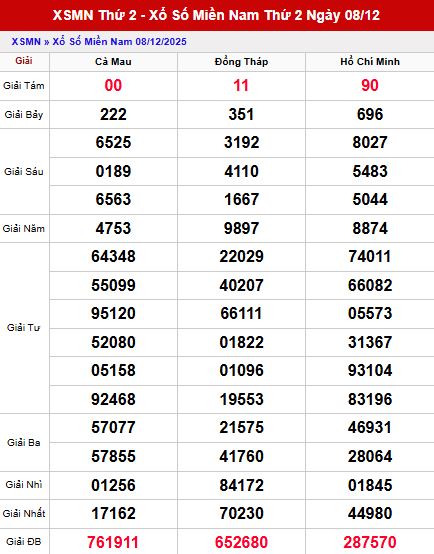 Phân tích kết quả XSMN ngày 8/12/2025