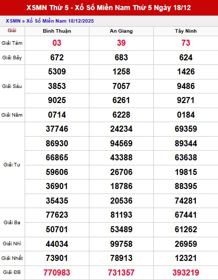 Dưới đây chuyên gia của chúng tôi sẽ đưa ra những dự đoán xổ số Miền Nam 25/12/2025 với 3 đài An Giang, Tây Ninh, Bình Thuận hôm nay như sau: