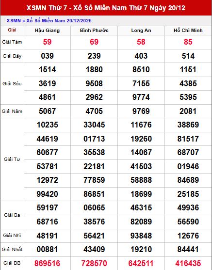 Mời các bạn tham khảo thông tin quay thử miền Nam ngày 27/12/2025 để có được những con số dự đoán xổ số Miền Nam ngày 27 tháng 12 năm 2025 có khả năng về cao trong bảng kết quả kỳ tới.